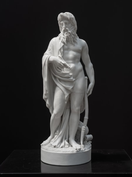 A North Italian fruitwood, walnut, ebony , boxwood, tulipwood and kingwood microcarving portrait relief miniature attributed to Giuseppe Maria Bonzanigo (1745-1820), depicting a standing Mars with cuirass, feathered helmet and sword, holding a spear with his right and a shield on his left hand.