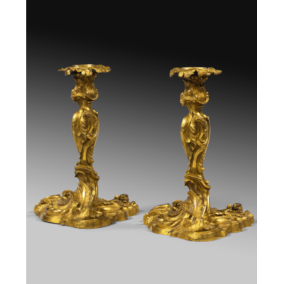 A pair of rare and important Italian Rococo ormolu twin-branch Candelabra.