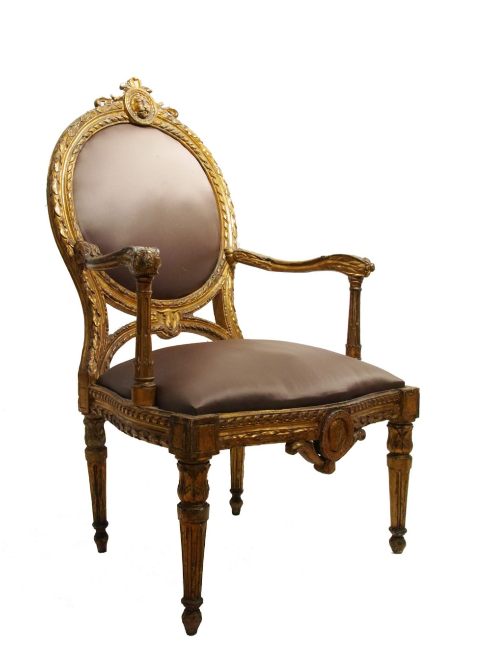 A set of four Roman neoclassical carved and giltwood armchairs, now in an important European foundation